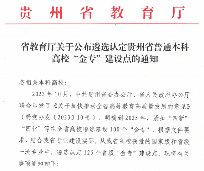 喜訊!我校四個專業(yè)入選貴州省“金專”建設(shè)點